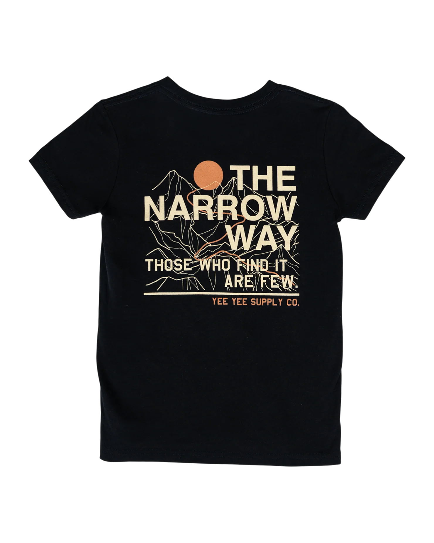 This is our narrow way tee we just released. It's based on Jesus' words in the book of Matthew: âEnter by the narrow gate.â For the gate is wide and the way is easy that leads to destruction, and those who enter by it are many.